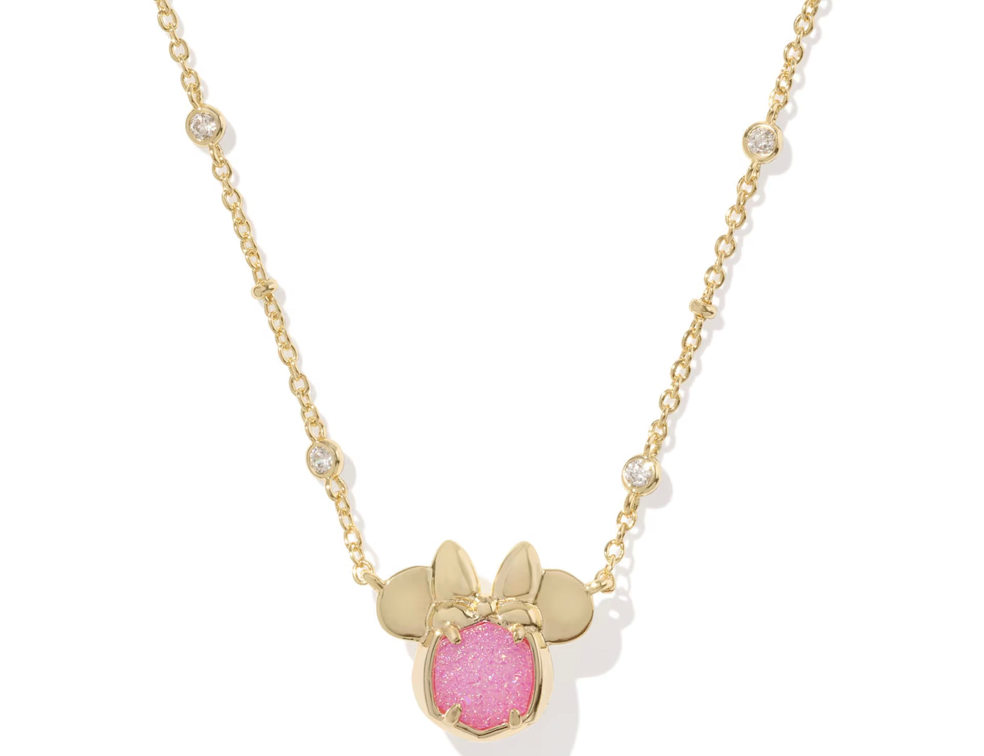 Gold Mickey Mouse Hot Pink Drusy Elisa Necklace