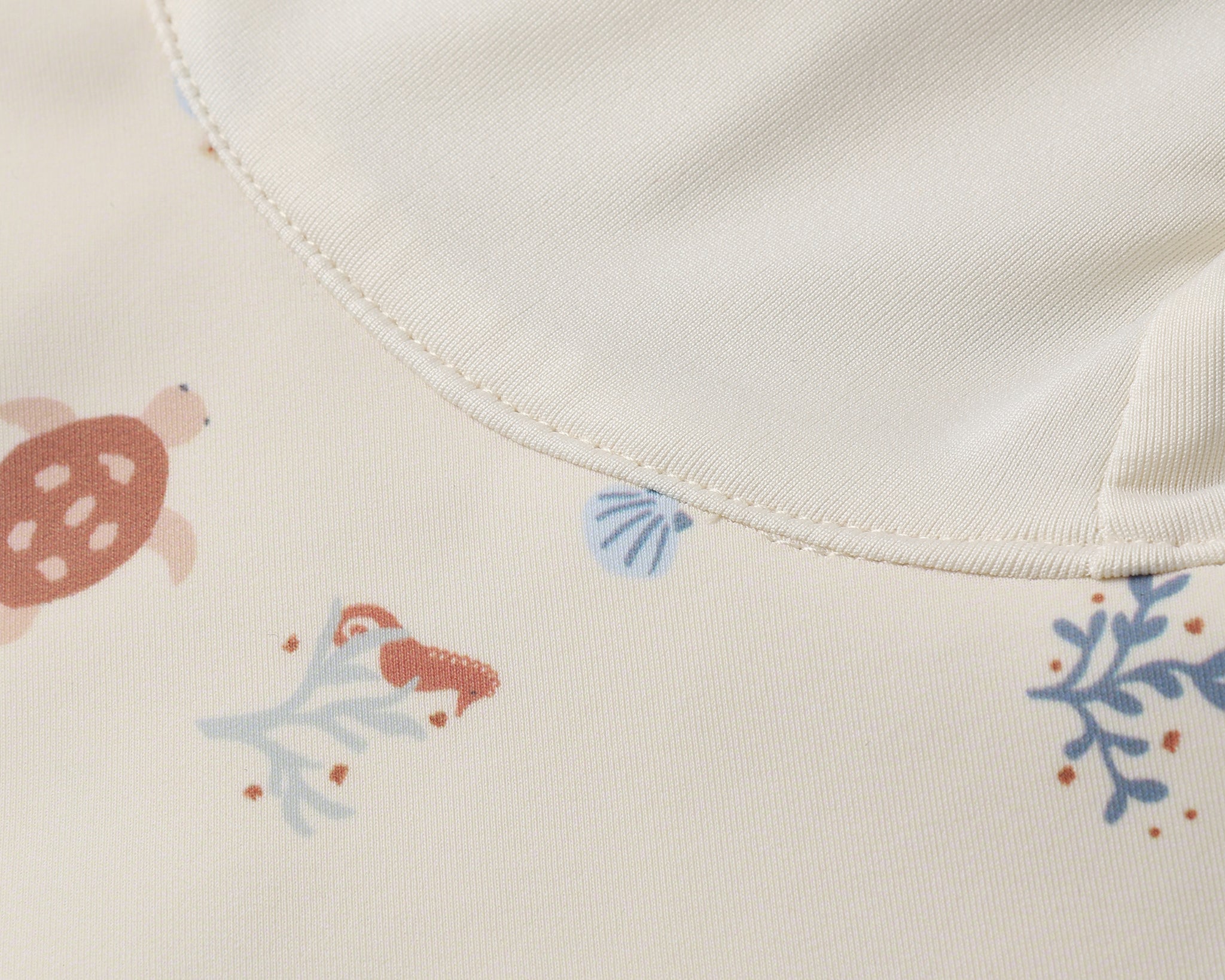 Featuring our 'aquatic' print on our 'natural' hue. Beachy blue and warm sand hues make this print perfect for summer.