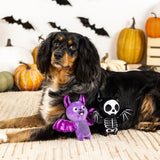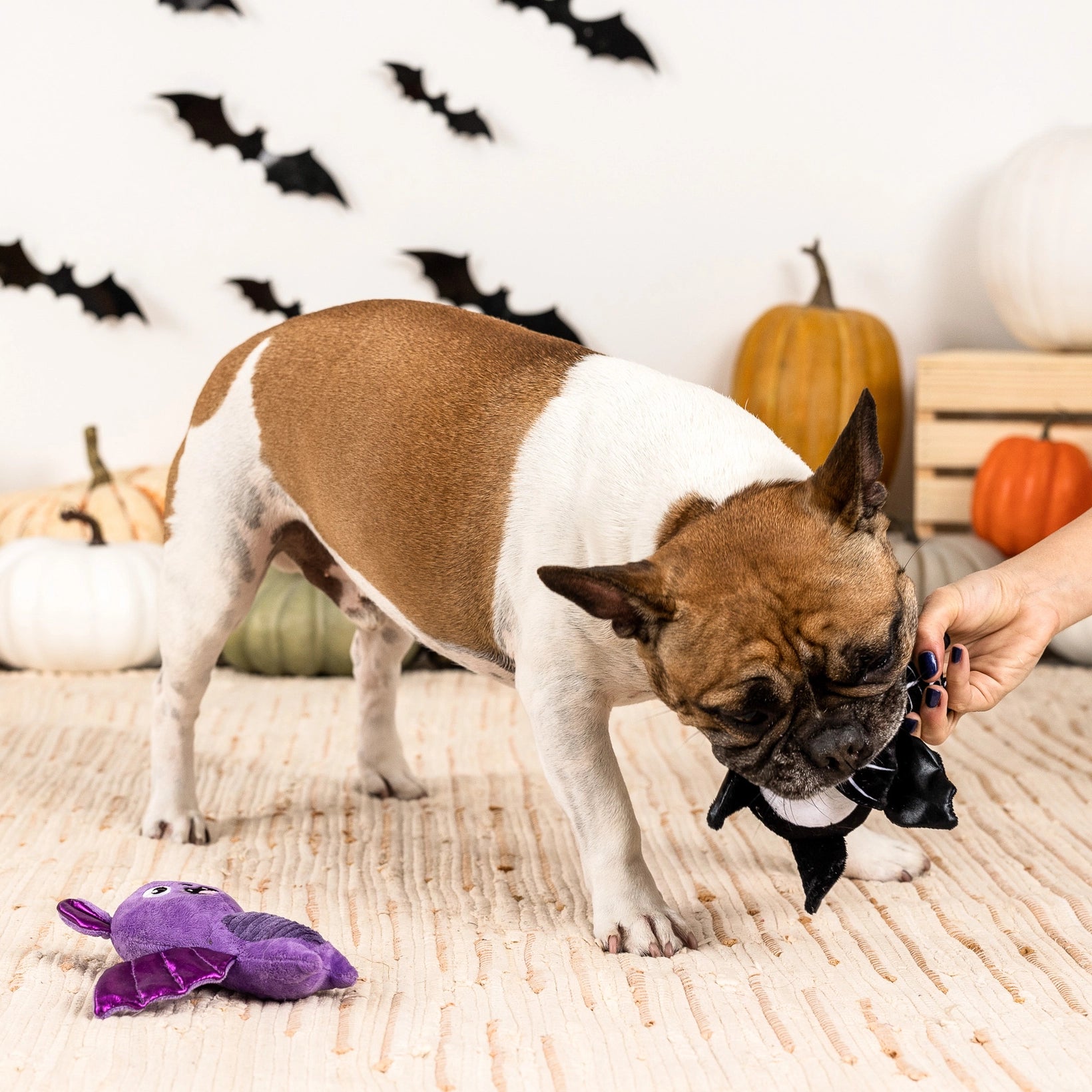 Fang-tastic fun! Petshop by Fringe Studio “Bat to the Bone” toy set is perfect for playtime, anytime. Made with a super loud squeaker in each toy and crazy crinkle paper details, this set was designed with interactive play in mind. With two toys for double the fun, whether you squeak, crinkle, or toss them, your pup will love playing with new batty friends. Great for all sized dogs and not intended for aggressive chewers.