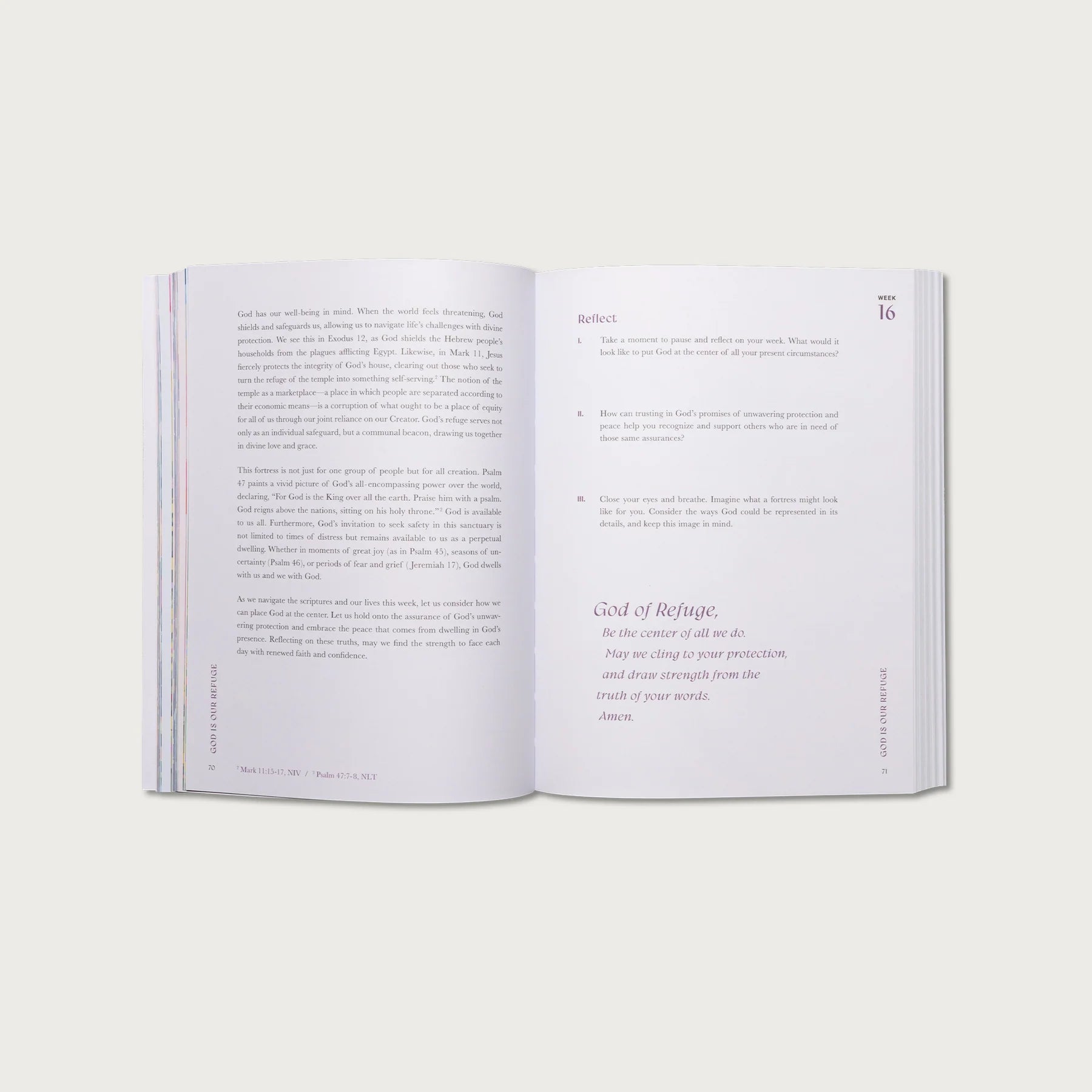 Study the Entire Bible in One Year: With suggested readings for each day of the week, and thoughtful prompts to invite deeper reflection, this book invites us to explore the story of scripture with fresh eyes and focused intention. Explore topics such as: