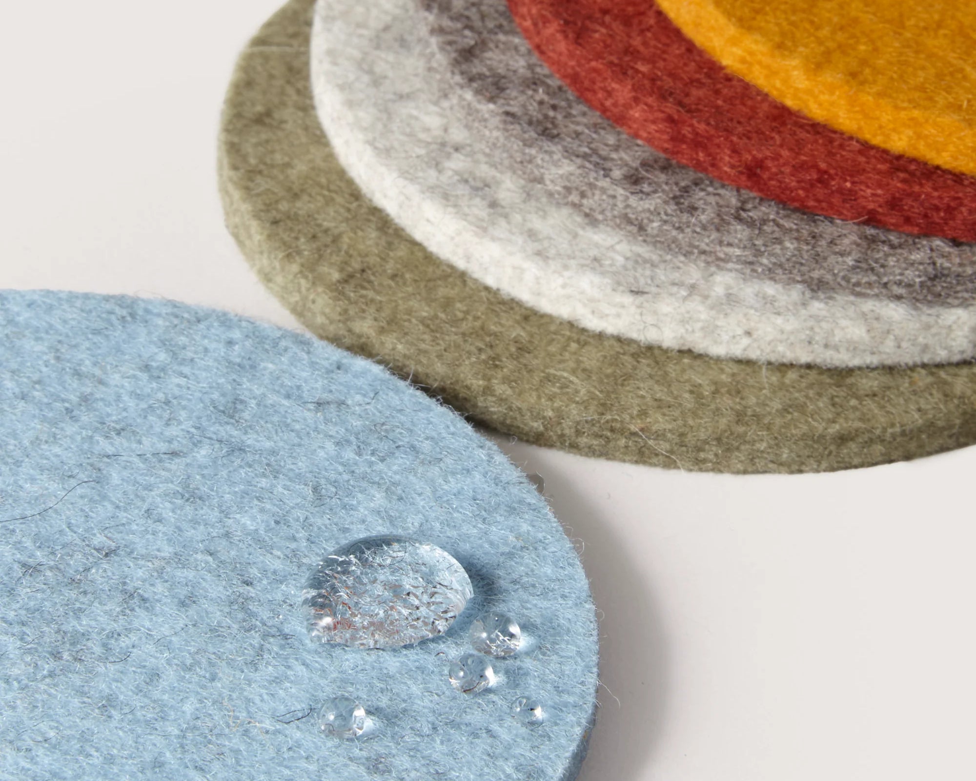 Merino wool is among the most hydrophilic natural fibers, capable of absorbing up to 30% of its weight without feeling damp. Our traditional Bierfilzl—German for "Beer Felt"—are crafted from the highest quality German Merino wool, offering durability with an elegant, heritage-inspired touch. Their clean, minimal design brings a refined modern accent to any home décor.