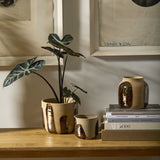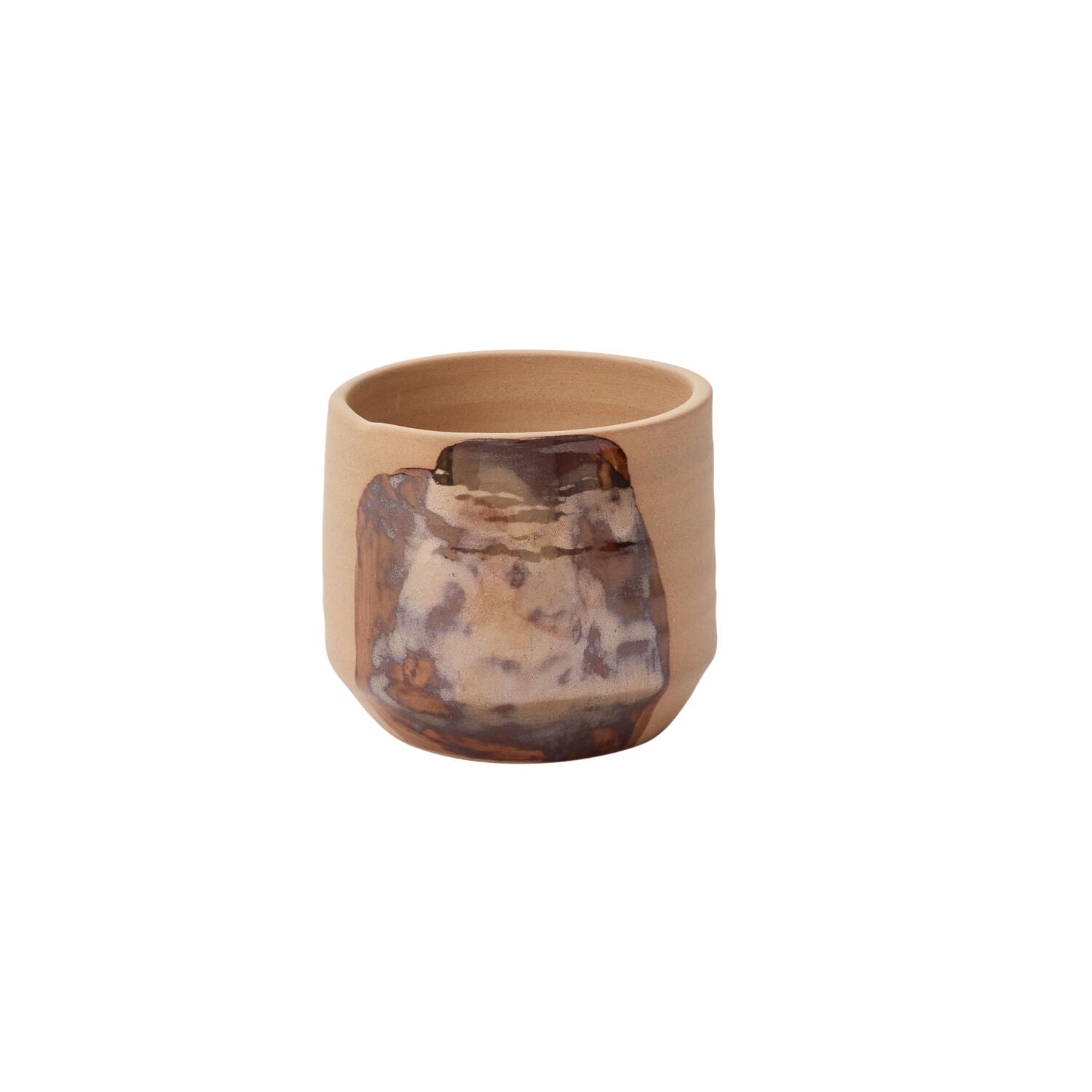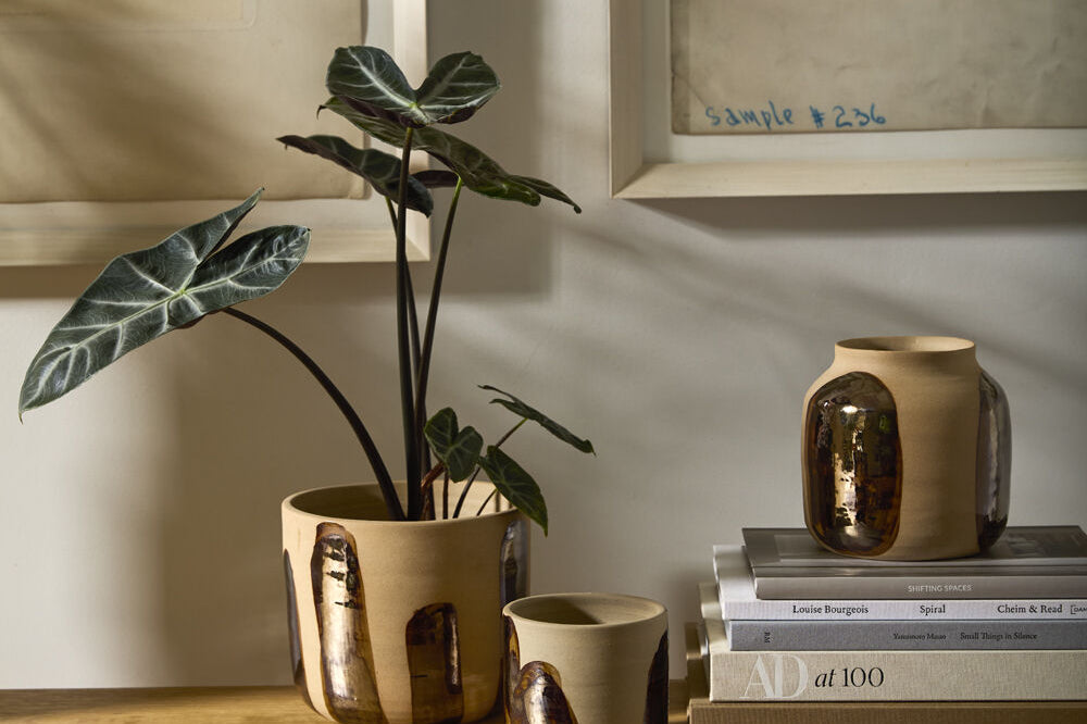 Bring an earthy handcrafted look to plants & home decor with the versatile Bronze Brushstroke Pot. This natural tan clay pot features wide brushstrokes of bronze metallic glazing across the exterior. The blend of earthy & metallic tones offers a touch of shine to decor. Fill with a 4.5-inch orchid drop-in plant as a beautiful gift or decorative home accent.