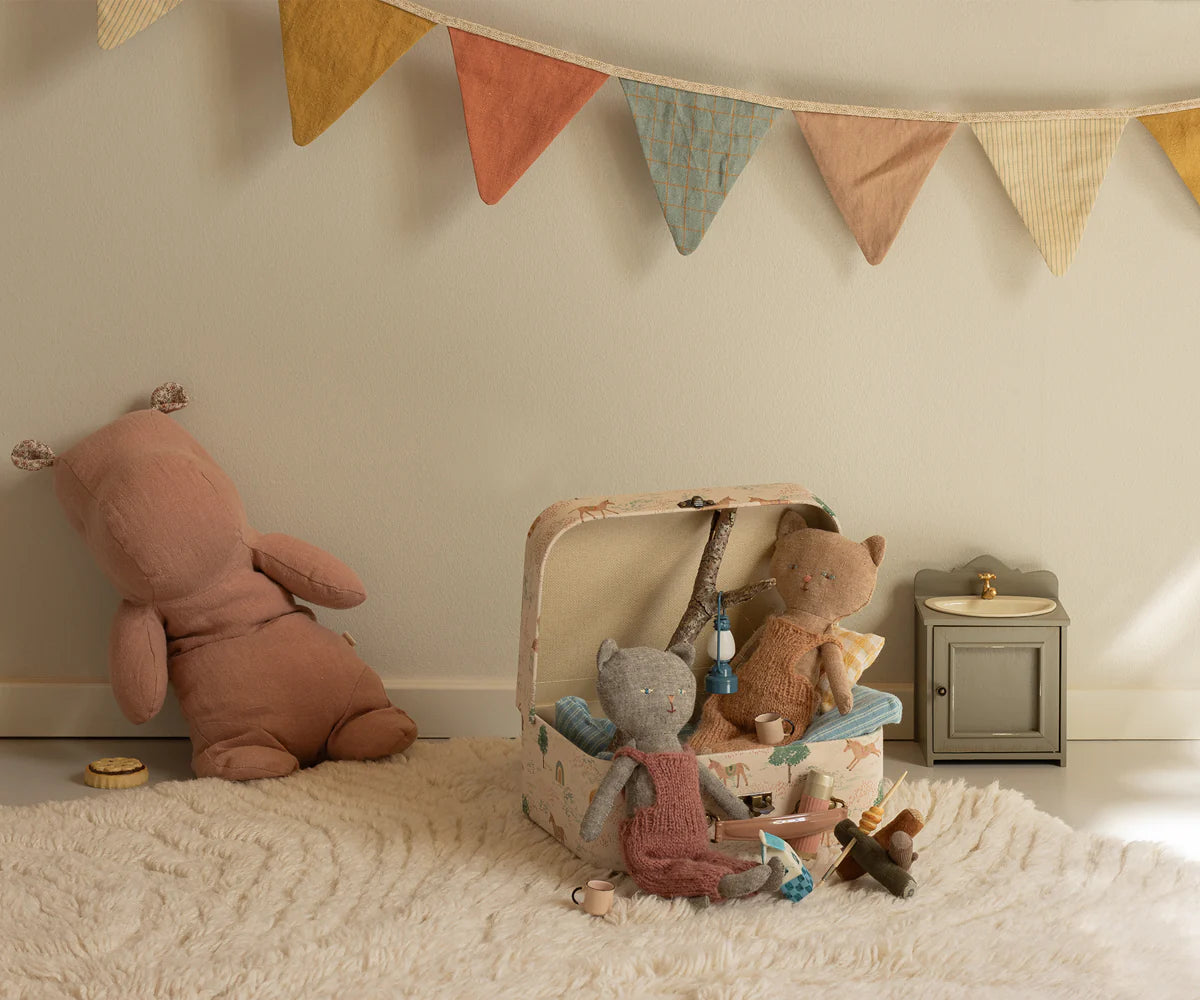 Kittens who fits perfectly into a small hand so they are easy to bring on the go. Kitten comes in a soft knitted overall and fits all Maileg furniture in size mini. The knitted hats from Best friends collection can keep the kittens warm in winter.