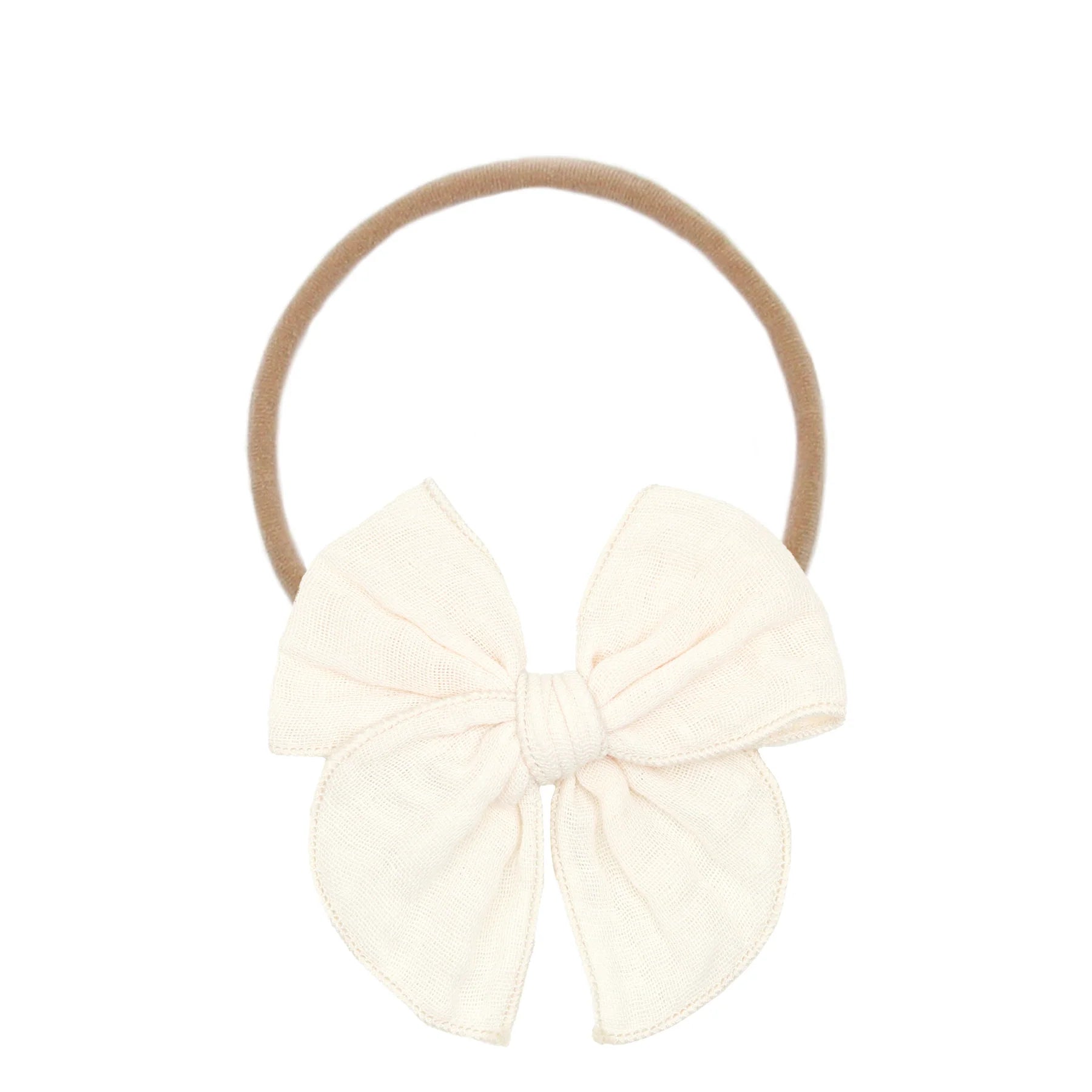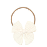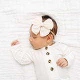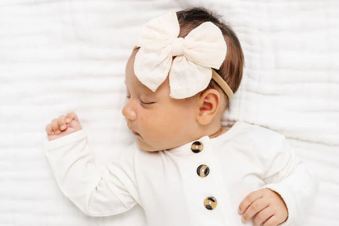 Our Heirloom Bow is soft, sweet, and full of vintage charm. With its full shape and long tails, it’s perfect for photos, play, and every precious moment in between.