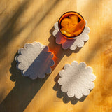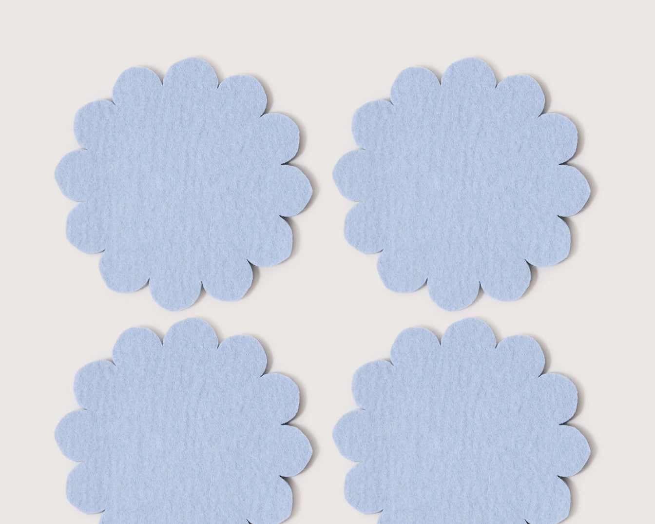 Inspired by our deep love and respect for Japan, these coasters are based on traditional Japanese floral crest patterns. The Merino wool protects surfaces from moisture and scratches with a bit of colorful formality.