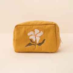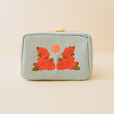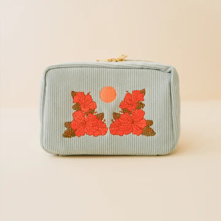 Keep your essentials organised wherever you go with this compact make up bag. Embroidered with a bold sun design, this bag includes internal pockets to keep everything neat, and is completed with a double zip fastening