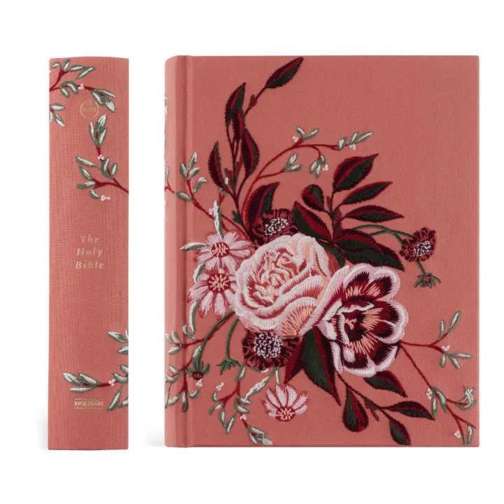 This CSB Bible features our embroidered Rosedal design. Inspired by the vibrant and flourishing Rosedal Gardens in Buenos Aires, the front of this Bible is covered with lush pink and red embroidered roses. The bursting colors radiate the rich life that the Lord has to offer us. With the vines and leaves extending across the front and back cover of this Bible, each touch offers an invitation to engage in the Lord’s intentional beauty. The back of this Bible features the verse Isaiah 40:8, “The grass withers, the flowers fade, but the word of our God remains forever.” This reminds us that, compared to the Lord’s most glorious creations, nothing endures like his everlasting Word and the truth that reigns over our hearts.