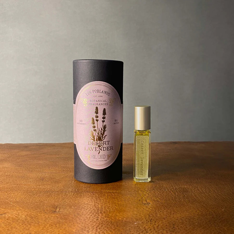 Three types of lavender - Grosso, Maillette and Angustifolia - team up to form a potent trio with a delicate, layered fragrance. These essential oils are distilled using only the flowers of the lavender plants to create a slightly sweet, completely pure scent. Once blended with neutral, all-natural jojoba seed oil, it becomes our Desert Lavender Botanical Fragrance, made available in an easily applied roll-on format.