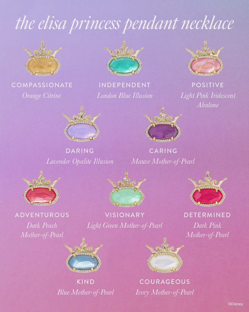 A style fit for a princess, meet the Elisa Princess Silver Short Pendant Necklace. Featuring our bestselling Elisa shape embellished with a sparkling crown accent, this reversible necklace is where style dreams come true. All you have to do is pick the Disney Princess-inspired color and unique trait that means the most to you.
