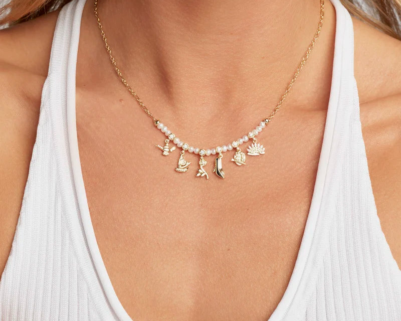 Taking inspiration from beloved Disney Princess characters, the Disney | Kendra Scott Princess Gold Charm Strand Necklace is a style that’s worthy of the spotlight. This strand is adorned with freshwater cultured pearls and charms representing the stories of Disney’s Belle, Cinderella, Jasmine, Moana, Rapunzel, and Tiana, making it stylish, whimsical, and totally enchanting.