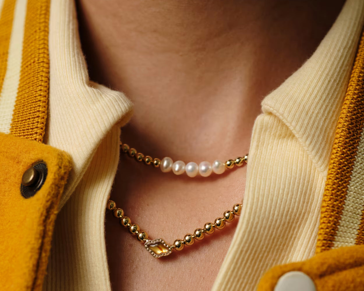 Go for a style that’s effortless, timeless, and full of shine with the Eve Gold Beaded Strand Necklace in Freshwater Cultured Pearl. A cluster of freshwater cultured pearls glimmers on a beaded strand that’ll make a chic pairing with any statement necklace, choker, or simple chain.