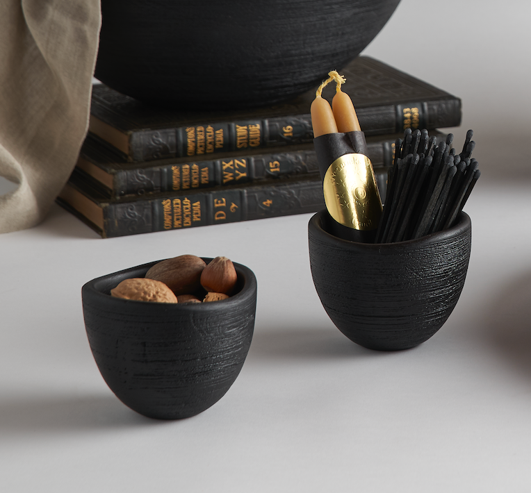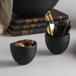 Use this handy set of tidbit bowls to serve nuts and other snacks, or to hold desk accessories like paperclips and stamps. These beautiful handmade items will vary from piece to piece due to their natural materials and individual craftsmanship. All serving pieces are food safe.