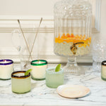 These candles are reusable as decorative pieces once the candle has burned and even feature our favorite margarita recipe on the back of the dust cover! Yummy!