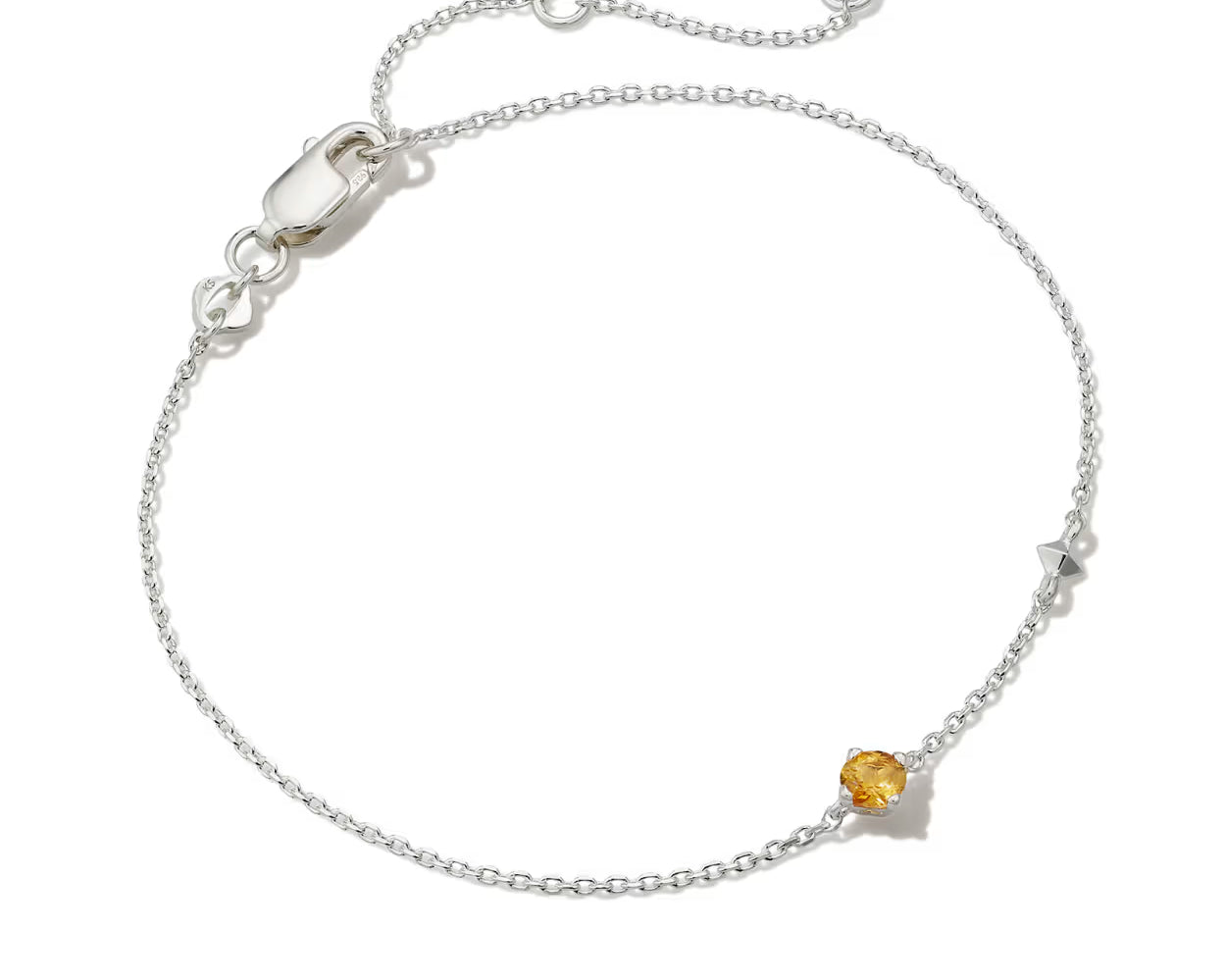 Meet this delicate and dainty layer that’s sure to delight. The Maisie Sterling Silver Delicate Chain Bracelet in Orange Citrine is our most minimal birthstone style, perfect for personalizing your look with elevated materials. Speaking of personalization, this bracelet features an adjustable closure for a custom fit. Citrine represents November birthdays, inspiring wonder, joy, and creativity.
