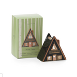 Incense & Tea Light Holder embodies the essence of Scandinavian coziness with its charming design. Artisanally designed, illustrated artwork is hand-painted onto ceramic to resemble a quaint Nordic cabin, adding a touch of rustic elegance to any space. It is intended to accommodate either an incense cone or tea light, making it a versatile and functional decor piece. Each house is intentionally crafted for incense smoke to smolder through the chimney, and for candlelight to flicker through the windows, perfect for creating a warm and inviting atmosphere.