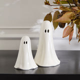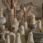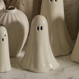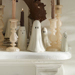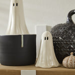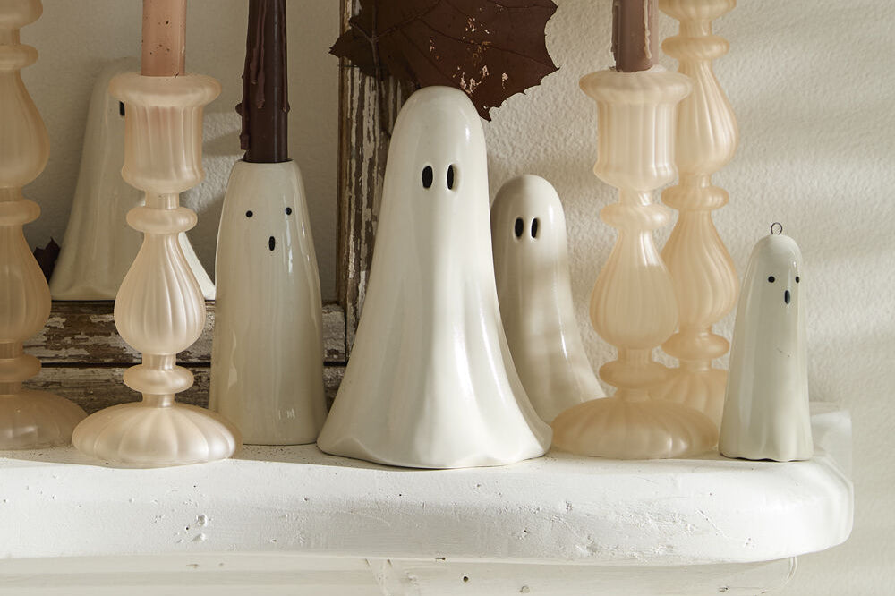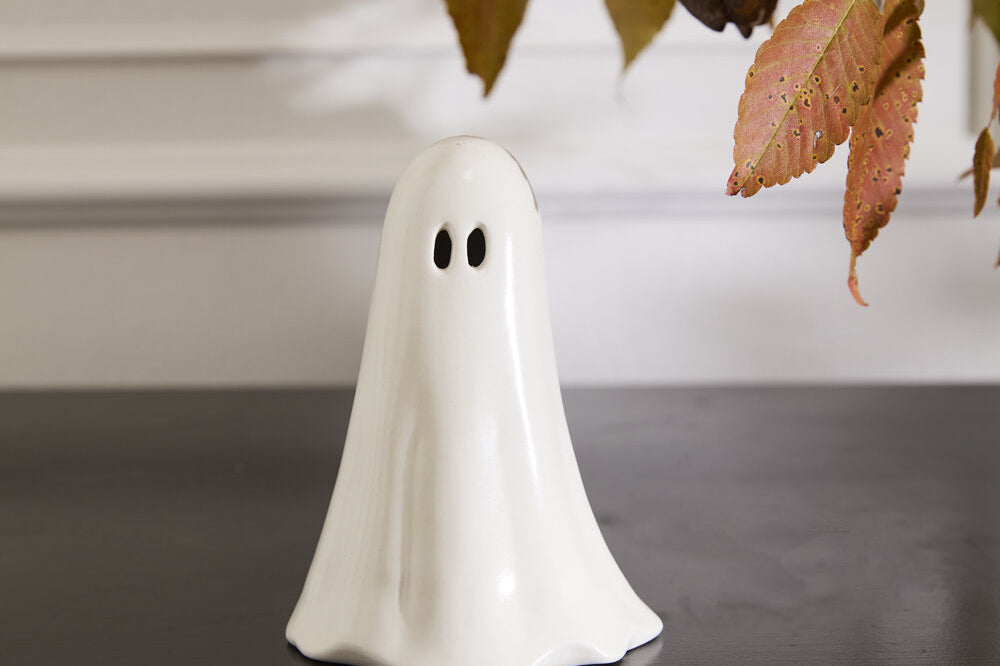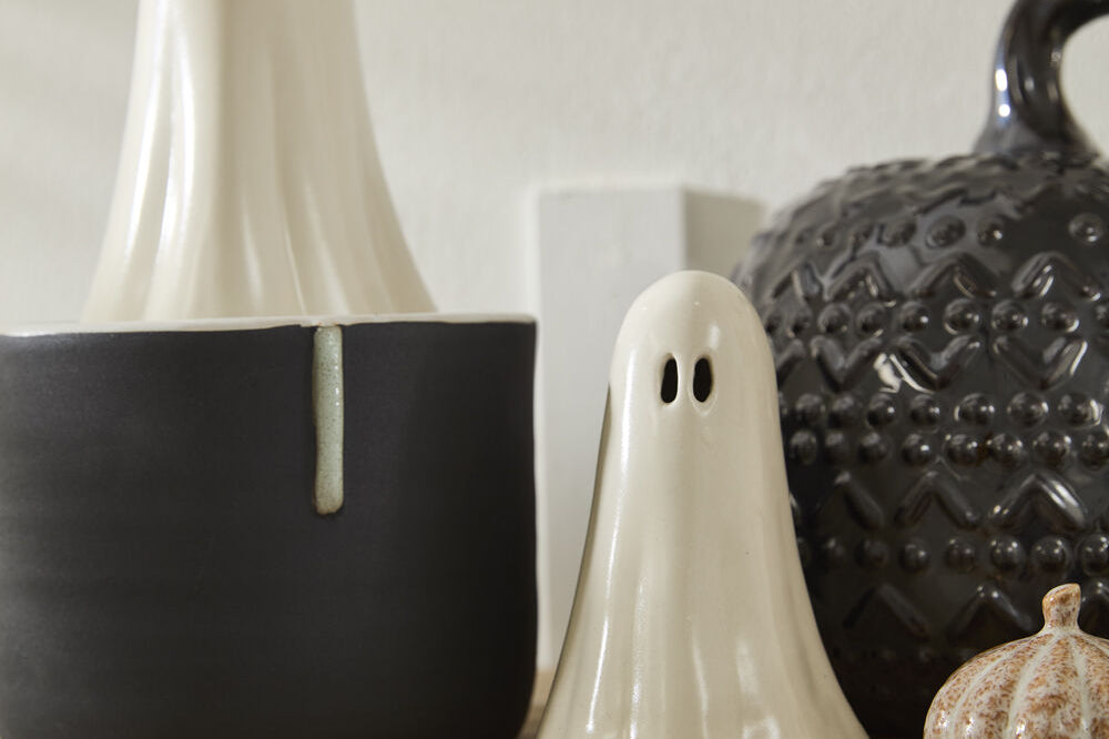 Just a little scary & spookily versatile, the Not So Ghostly Figurines Collection includes two sizes of classic, ceramic ghosts that can layer into any bookcase, tablescape, or Halloween moment. These not-so-spooky ghosts are hand painted, have open oval-shaped eyes & an open base that allows them to be paired with a tealight for a soft glow. Layer multiple ghosts together for a playful & impactful Halloween display.