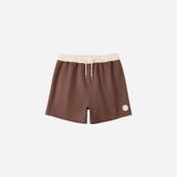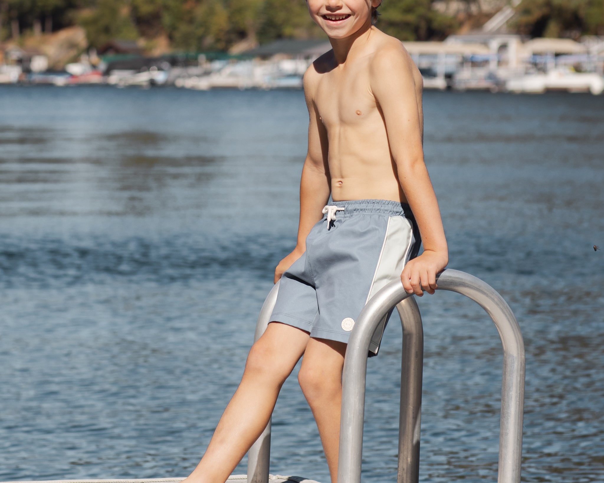 These soft boardshorts feature a contrast side panel with adjustable drawstring and back pocket.