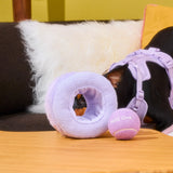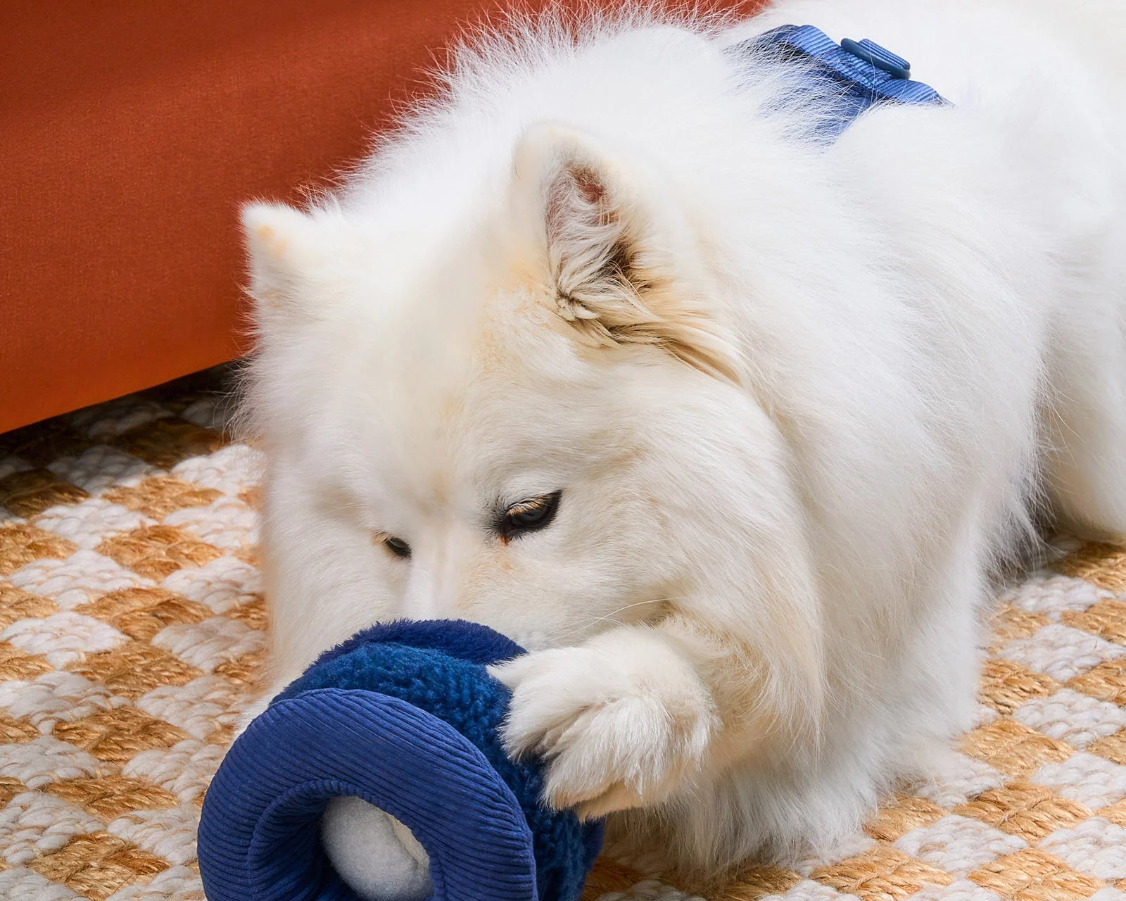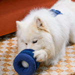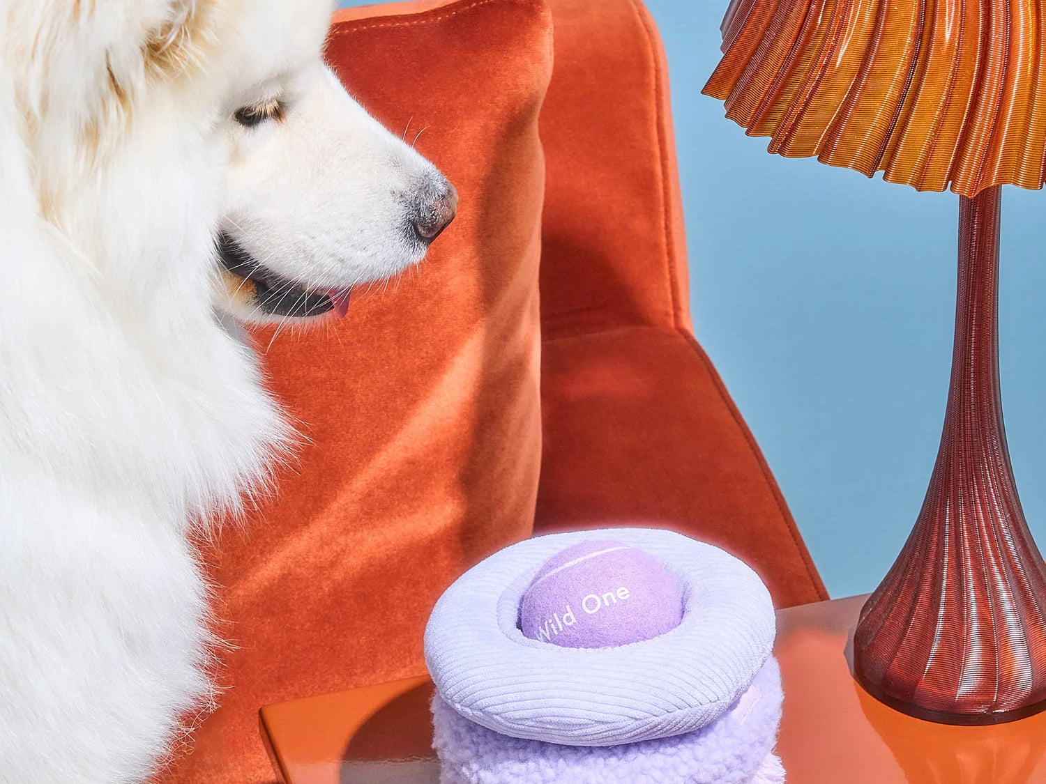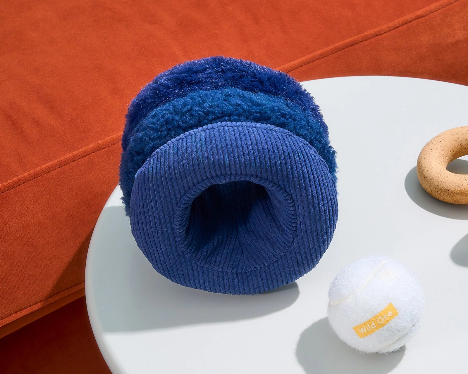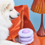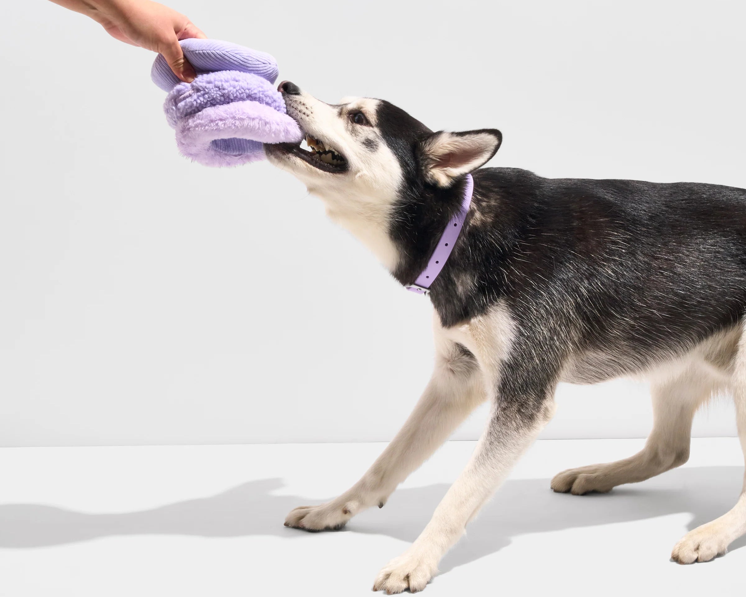 A puzzle toy packed with sounds, textures, and reward keep your pup busy and captivated. Features a hidden tennis ball inside a tri-stack of sherpa, corduroy, and fluff textures, with crinkle, high and low squeak sounds.