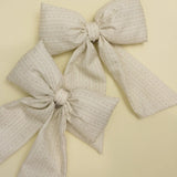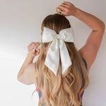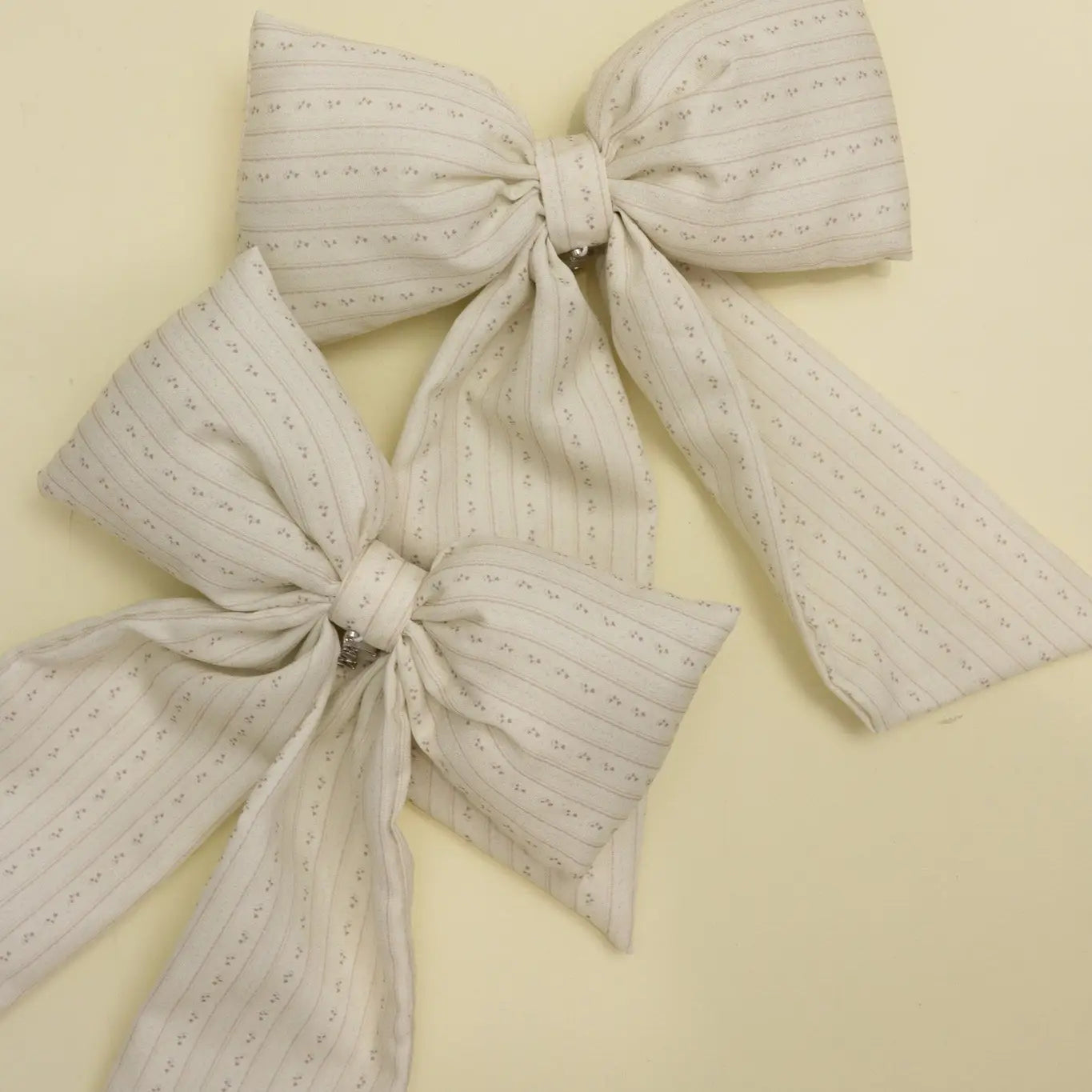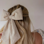 This bow is the girly piece you've been looking for. It has a large barrette style clamp that will stay in your hair all day. What's better? The bow has a little stuffing in it to give it shape and an extra flare of femininity. We love the look of this classic bow with a little KAXI twist. Completed with a KAXI charm in the middle.