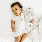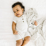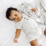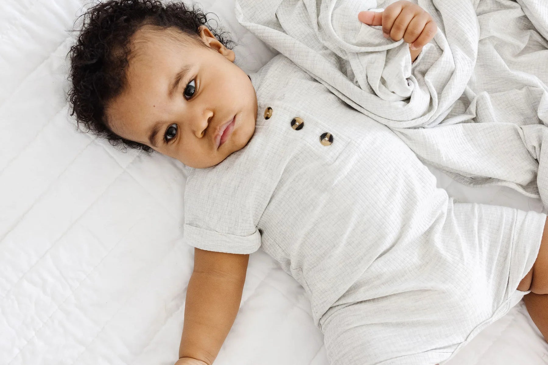 Our Lou Lou Rompers are the perfect everyday go-to, featuring functional front buttons, rolled sleeves and cuffs for a gender-neutral look, and snaps for easy changes—all in a lightweight, silky-soft fabric. A hassle-free one-piece that's effortlessly cute!