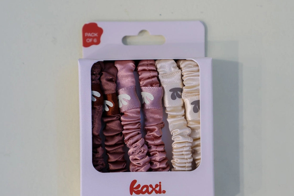 Say goodbye to hair damage and hello to sweet dreams with our Skinny Sleep Scrunchies. Made from soft, silky satin, these scrunchies are designed to protect your hair while you sleep (or anytime you throw it up). Each pack comes with 6 skinny scrunchies: 🤍 Neutral Pack – your everyday essentials in timeless shades. 🌈 Colorful Pack – playful pops of color to brighten your hair game. Why satin? Because your hair deserves beauty sleep, too: 🌙 Reduces Breakage & Frizz – satin glides against your strands instead of Tugging. ✨ Prevents Creasing – wake up without harsh dents in your hair. 💆Gentle on All Hair Types – secure hold without the damage. Skinny in size but big on benefits, these scrunchies are your new must-have for healthy, happy hair.