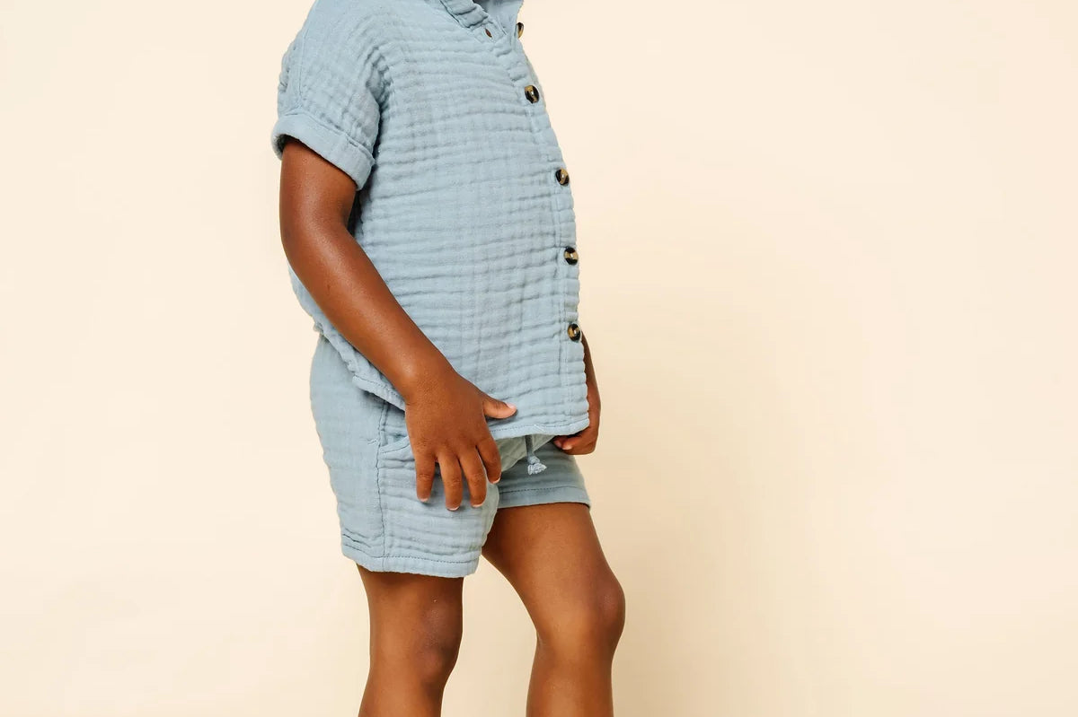 - Button-up top gives a relaxed look that's perfect for play or dressing up.
