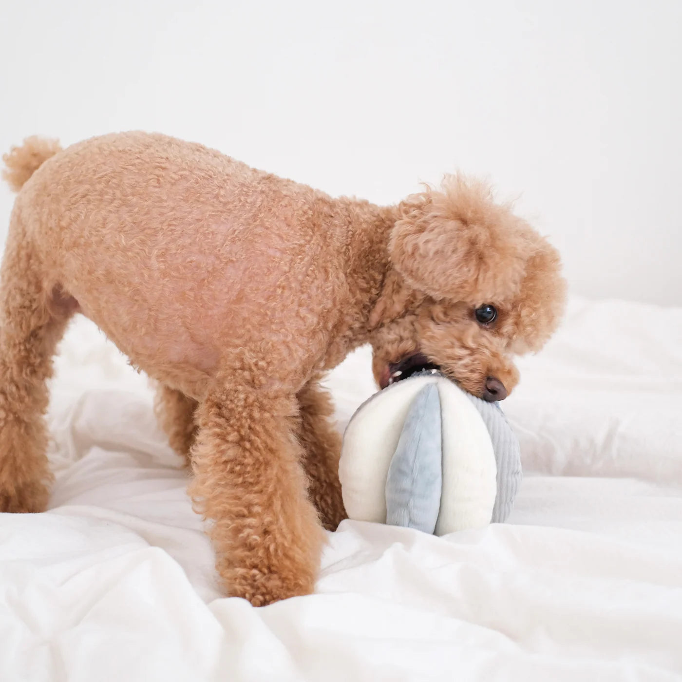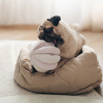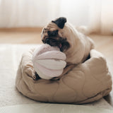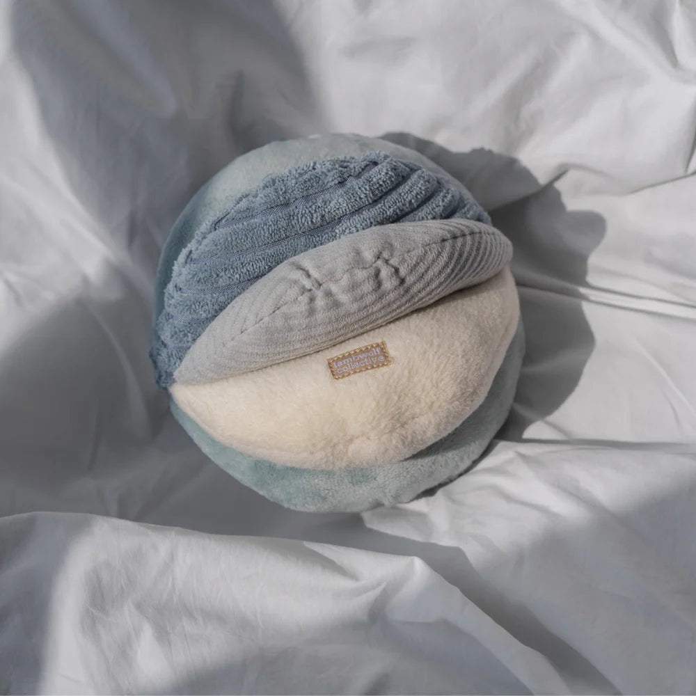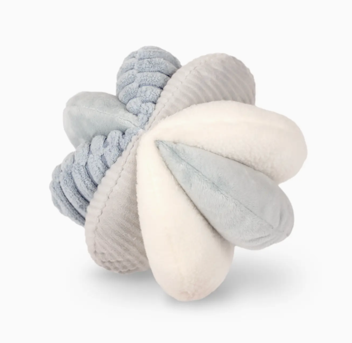 TOTO is a sensory play snuffle ball with 8 wide slots to hide treats of all sizes. The ball is made with 4 different textured fabric, adding extra stimulation for the canine mouth during the nosework session. 8 squeakers are hidden inside this total boredom buster!
