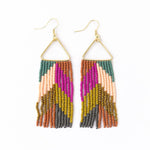 Part of our signature seed bead collection, these amazing fringe earrings offer a unique look as they hang from a brass triangle at the top. They are handcrafted by artisans in India and are sure to add an effortlessly cool edge to any modern boho look.