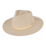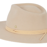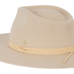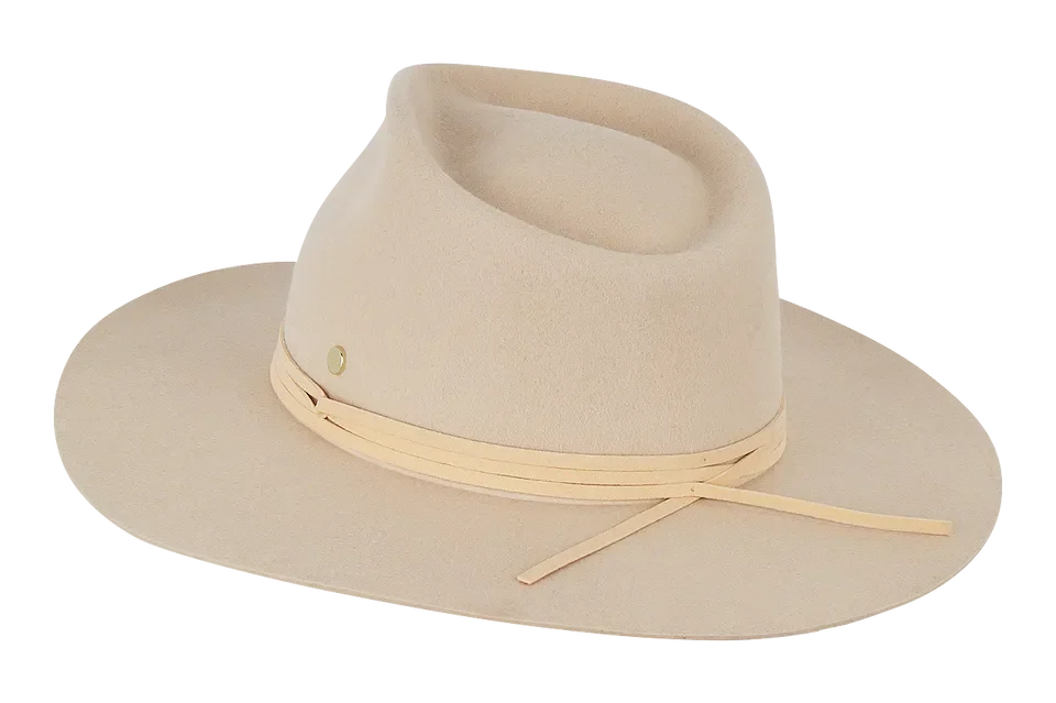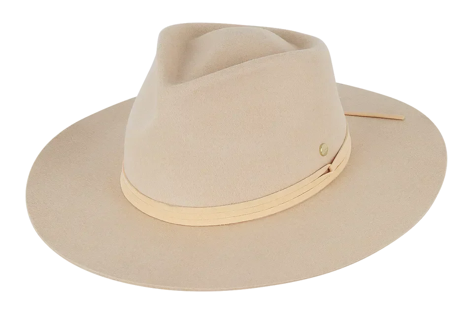 Crafted from luxurious 100% Australian wool, Alice provides substantial quality and a confidently wide silhouette. The design is cinched with an elegant faux suede crown band and a minimal metal trim logo, offering an element of refined style. The Alice is the quintessential piece for moving through any setting with assurance and natural grace.